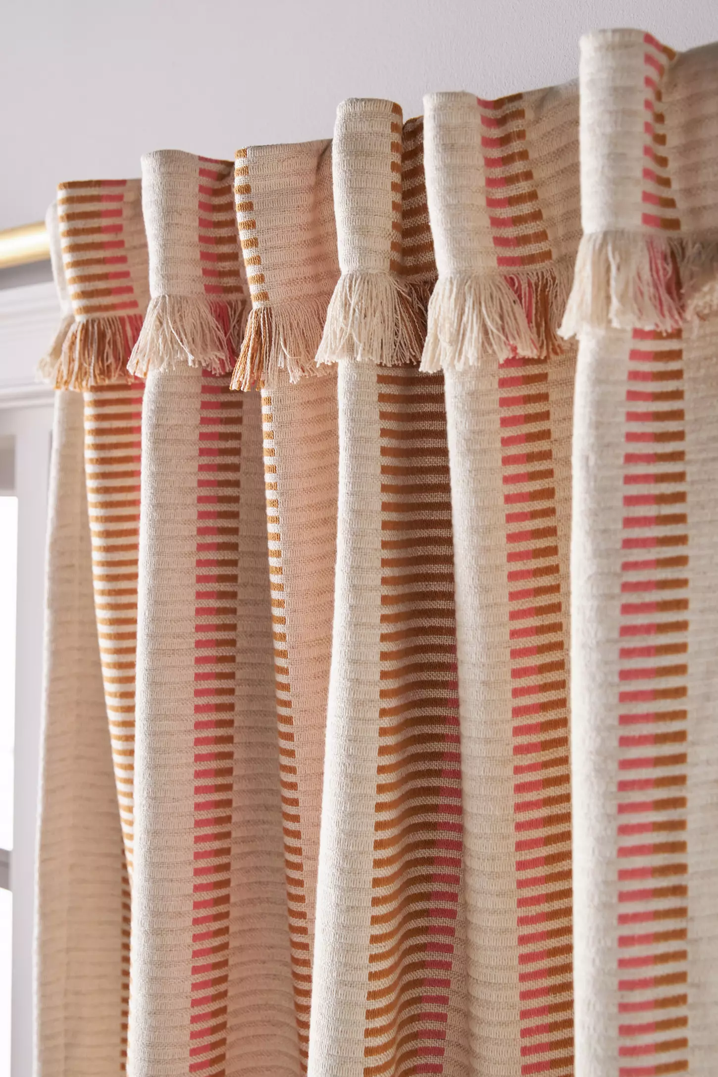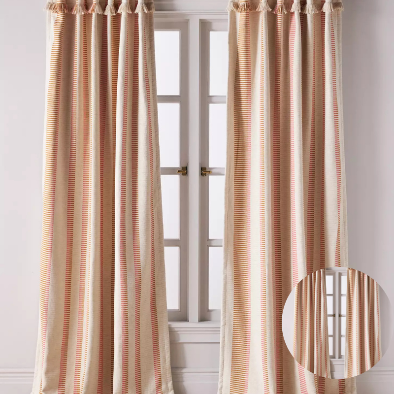 The tunnel-tab design allows for easy installation on curtain rods, ensuring smooth sliding and a neat, polished window treatment. The patterned pieced stripe blends seamlessly with a variety of décor styles — from modern minimalist to eclectic and boho interiors.