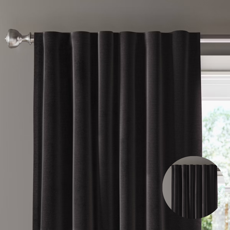 The thick lined construction helps reduce incoming sunlight, creating a darker and more private environment suitable for bedrooms, living rooms, or media spaces. The rod pocket and back tab design ensures quick and simple installation on standard curtain rods, allowing for flexible styling and easy adjustment. Designed for everyday practicality, the curtain panel is also machine washable, making maintenance simple and convenient.