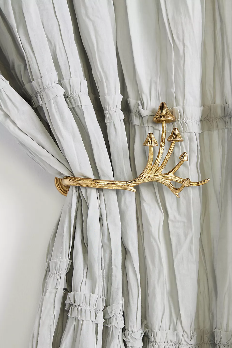 Bring a whimsical yet elegant touch to your window décor with the Toadstool Tieback. Crafted from durable brass, this decorative curtain accessory combines charm and functionality, holding your drapes neatly while adding a playful design accent to any room.
